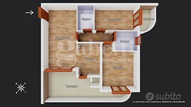 Doppi servizi: uno con vasca, l'altro con box doccia.