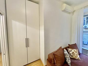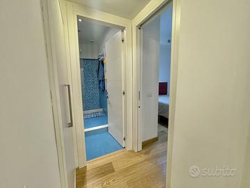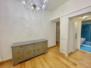In occasione della ristrutturazione l'immobile è stato dotato di ogni confort, ponendo grande attenzione ai singoli dettagli interni ed agli arredi. La cucina completa di tutti gli elettrodomestici è collocata nel comodo soggiorno con possibilità di separarla da esso con la chiusura di un'ampia vetrata che completa una raffinata struttura realizzata artigianalmente su misura che offre anche capienti spazi integrati da ripiani in vetro. Sono inoltre presenti numerose e capienti armadiature realizza