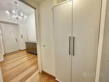 L'appartamento è stato completamente ristrutturato con l'utilizzo di pregevoli finiture che hanno conferito all'immobile uno charme moderno dal gusto raffinato. La pavimentazione è interamente realizzata in pregiato parquet, mentre nei servizi, dotati di comodi box doccia, si è scelto l'utilizzo di un rivestimento in ceramica.