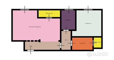 L'appartamento, posto al terzo piano, vanta un luminoso salone doppio, una cucina abitabile, una camera da letto e un bagno. Dotato di due balconi, offre spazi ampi e ben distribuiti per una vita confortevole.