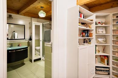 Attraverso una comoda ed elegante scala interna, al piano superiore soppacato perfettametne vivibile grazie alla nostevole altezza degli ambienti, si trovano una seconda ampia camera da letto con comoda cabina armadio ed un secondo servizio.