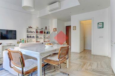 In una delle vie più ricercate ed eleganti del quartiere Torlonia, a pochi passi dalla Villa e più precisamente in Via G. Battista De Rossi, proponiamo, al primo piano di uno stabile signorile che offre servizio di portineria, la vendita di uno splendido bilocale completamente ristruttuato con materiali e finiture di qualità. L'appartamento, molto luminoso grazie alla sua esposizione ad Est, si estende su una superficie di circa 55 mq e si presenta così composto: ampio soggiorno con angolo cottura e affaccio su Via G. Tomassetti, camera matrimoniale con ampia finestra, antibagno con comoda zona lavanderia e bagno completo di tutto con sistema di aerazione. L'immobile, derivante da un frazionamento, ha un primo spazio comune che conduce all'ingresso dell'appartamento, con porta blindata. La soluzione offre un design moderno e si presenta con pavimentazione in gres effetto legno, infissi in alluminio/doppio-vetro, porte in legno, riscaldamento centralizzato e aria condizionata. Dispone inoltre di una quota di comproprietà dell'autorimessa che offre la possibilità di parcheggiare sotto lo stabile, garantendo praticità e sicurezza per i residenti. La posizione in cui si colloca l'immobile è strategica e centrale, vicino tutte le attività commerciali e di trasporto pubblico. Questo appartamento rappresenta un'opportunità abitativa unica per chi desidera vivere in un ambiente elegante e confortevole nel cuore di Roma. LE PRESENTI INDICAZIONI E/O PLANIMETRIE SONO PURAMENTE INDICATIVE E NON COSTITUISCONO ELEMENTO CONTRATTUALE