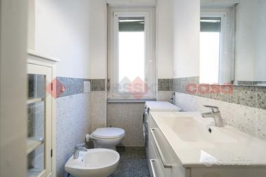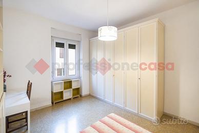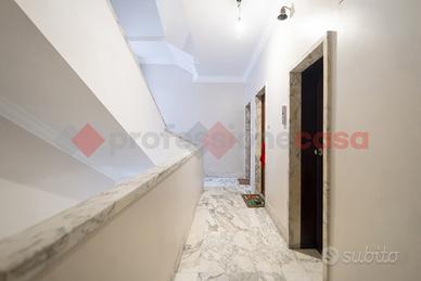 L'appartamento è composto da: ingresso, ampio disimpegno, soggiorno con doppia finestra, camera da letto matrimoniale, cucina abitabile servita da balcone, bagno padronale e bagnetto di servizio.