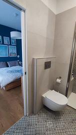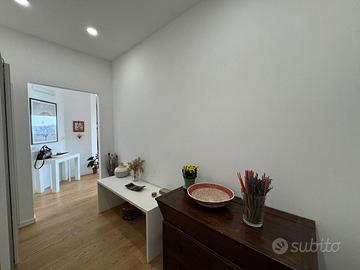 Ingresso, salone doppio dotato di sistema audio dolby surround con cucina di alta gamma e su misura completa di tutti elettromestici di qualità, tre camere da letto e una camera studio, due servizi uno con vasca e l'altro con doccia,