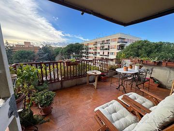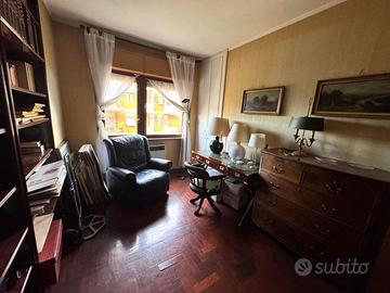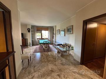 Via Luigi Chiala - In contesto residenziale nel verde con servizio di portineria, proponiamo un appartamento in vendita al 5° piano, di sei totali, con splendido affaccio aperto e silenzioso così composto: ampio ingresso, salone, tre camere da letto, cucina con tinello, doppi servizi, lavanderia, ripostiglio, terrazzo e due balconi, cantina di proprietà. La doppia esposizione sud/ovest dona luminosità all'intero immobile. Marmo nella zona giorno e parquet nelle camere; infissi in doppio vetro e grate anti-intrusione Presente area condominiale per l'accesso alle auto per il carico/scarico, possibilità acquisto BOX 15mq a parte.