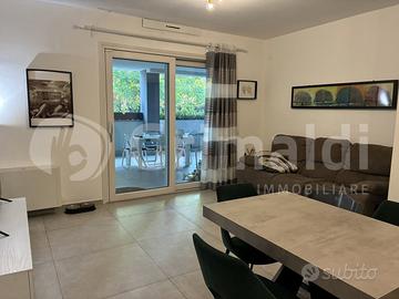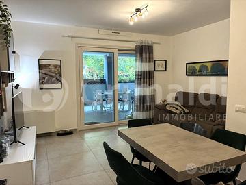 L'immobile è posto al piano terra all'interno di uno stabile di recente costruzione ultimata nel 2023, priva di barriere architettoniche e dotata di ascensore, ed internamente risulta così composto: salone con angolo cottura a vista, camera matrimoniale con servizio interno privato finestrato, comoda cameretta, bagno di servizio anch'esso finestrato, terrazzo dove c'è la predisposizione per adibirlo a portico e giardino di 21mq mattonato.
