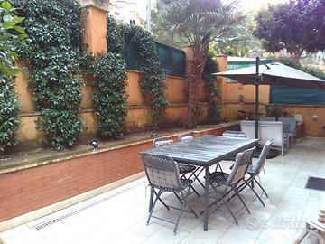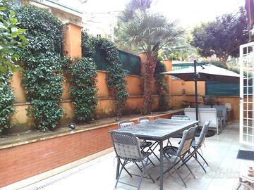 In una delle zone più signorili e riservate di Roma Nord, nelle immediate vicinanze dell'Hotel Cavalieri Hilton e precisamente in Via Clivo di Cinna, proponiamo la vendita di un appartamento completamente e finemente ristrutturato, pronto per essere abitato. La Balduina Alta è un quartiere residenziale molto apprezzato per la tranquillità, il verde e la qualità della vita, pur restando ben collegato al centro città e ai principali servizi. La zona offre scuole, supermercati, attività commerciali, aree verdi e collegamenti efficienti, risultando ideale sia per famiglie sia per giovani coppie alla ricerca di comfort e riservatezza. L'immobile è situato al piano terra ma gode di affacci anche da primo piano, garantendo luminosità e privacy. La sua composizione interna è la seguente: ingresso, un salone con angolo cottura, giardino pavimentato a livello, tre camere da letto, doppi servizi e una veranda adibita a cabina armadio/spogliatoio della camera padronale. Completa la proprietà una cantina. La ristrutturazione è stata curata nei minimi dettagli, con finiture moderne e materiali di qualità. L'appartamento è dotato di: aria condizionata canalizzata, riscaldamento termoautonomo, infissi in doppio vetro con apertura a vasistas, inferriate di sicurezza e porta blindata.