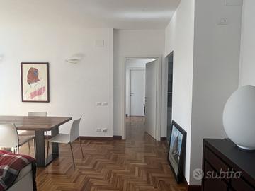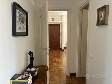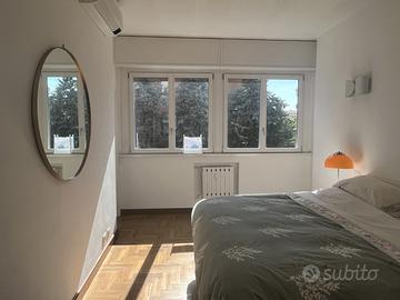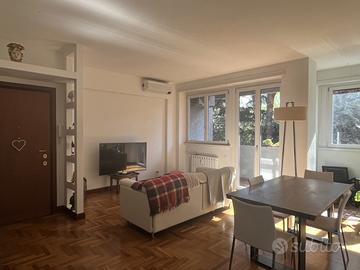 Trilocale ristrutturato e arredato via Montaione 41 via Montaione -Zona Nuovo Salario- CONTRATTO TRANSITORIO NO STUDENTI - LIBERO DA SUBITO - In un contesto tranquillo e residenziale e nelle immediate vicinanze di tutti i principali servizi, proponiamo in locazione un appartamento di circa 106 mq posto al primo piano di una palazzina di totali piano sette, con ascensore e servizio di portineria per mezza giornata. L'immobile si presenta in ottime condizioni interne in quanto recentemente ristrutturato, verrà affittato completamente arredato ed è così composto: ingresso, soggiorno doppio con accesso ad un balcone, cucina abitabile arredata di tutti gli elettrodomestici con accesso ad un secondo balcone, due camere da letto, due bagni di cui uno privato ed un comodo ripostiglio. Presenta inoltre porta blindata, infissi in pvc doppio vetro, serrande elettriche, tende da sole, impianto di climatizzazione sia nella zona giorno che nella zona notte, parquet in tutta casa. Possibilità di usufruire di posti auto condominiali fino a riempimento. - La tipologia di contratto prevista è quella del Transitorio (NO residenza-massimo 18 mesi). Si richiedono referenze.