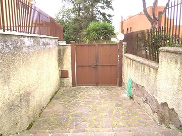Tramite l'ingresso al piano terra entriamo in un giardino in parte pavimentato, che si collega con il terrazzo di una delle camere da letto.