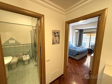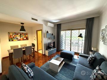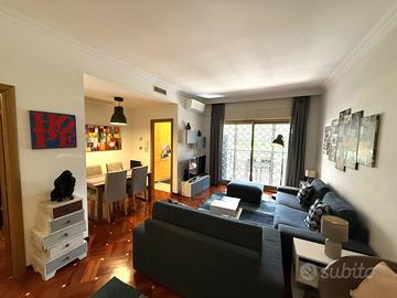 L'appartamento, completamente e finemente ristrutturato, presenta pavimenti in parquet, aria condizionata, cancelletti di sicurezza alle finestre e tende da sole.