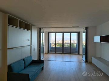 In questo elitario contesto proponiamo in locazione uno spettacolare, elegante e confortevole appartamento, completamente e finemente arredato, caratterizzato dalla splendida e panoramica posizione al 25° piano della Torre e dalla comoda metratura interna data dalla composizione sviluppata su 2 moduli.
