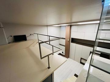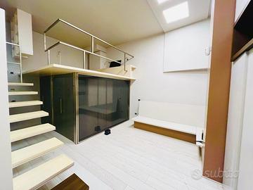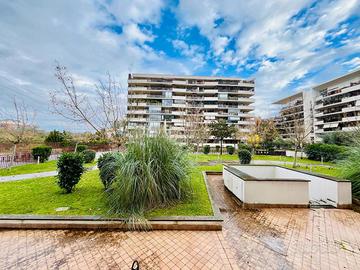 Rif. L53/24 - Eur Torrino, zona di Roma caratterizzata prevalentemente da abitazioni residenziali e dall'omonimo parco che ne rappresenta il polmone verde, ricca di attività commerciali, adiacente impianti sportivi, chiese e il grande centro commerciale denominato "Euroma 2", proponiamo in locazione in Via Amsterdam, in signorile stabile di recente costruzione, particolare e curato appartamento articolato su due livelli, collegati internamente da scala lineare di design. L'appartamento è composto al piano terra da soggiorno, angolo cottura separato e schermato, bagno e terrazzino con ripostiglio esterno e tende da sole; la comoda scala interna lineare collega il piano inferiore, servito anche da ingresso indipendente, dove è ubicata la camera con letto sospeso, una spaziosa cabina armadio a giorno e il bagno privato.