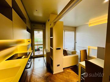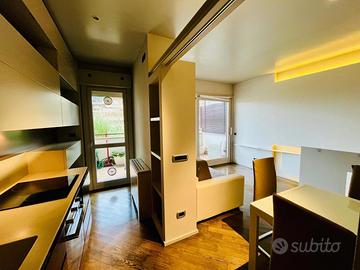 L'appartamento si presenta in ottimo stato, completamente e finemente arredato, servito da riscaldamento e raffrescamento con fancoil, illuminazione a led, videocitofono, tapparelle elettriche, portoncino blindato, impianto di allarme. Canone mensile Euro 1.400,00, oltre spese condominiali, comprensive anche di riscaldamento e acqua, di Euro 200,00 mensili. IMMEDIATAMENTE DISPONIBILE, contratto anni 4+4, solo referenziati, preferibili aziende.
