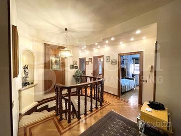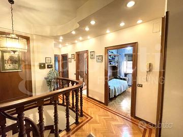 Appio Latino - San Giovanni - Nella storica Via Latina, a due passi dalle Mura Latine e dal Parco degli Scipioni, in posizione centralissima fornita di ogni servizio, proponiamo in vendita uno splendido appartamento di ampia metratura su due livelli, ai piani primo e secondo collegati tra loro da una magnifica scala interna. L'immobile è composto al primo piano da ingresso, salone doppio di rappresentanza con pavimenti in marmo travertino ed intarsi, un'ampia cucina abitabile, camera-studio impreziosita con boiserie in legno, bagno con finestra, comodo ripostiglio sottoscala ed ampio balcone. Attraverso una meravigliosa scala interna anch'essa in marmo travertino e corrimano di alta falegnameria, si accede alla zona notte sita al piano secondo, composta di tre camere da letto e due bagni entrambi finestrati ed un balcone.