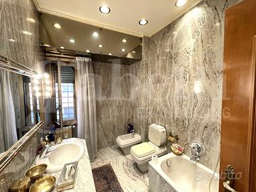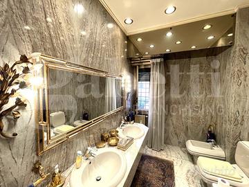 L'appartamento ristrutturato con materiali di pregio, presenta marmi e parquet nella pavimentazione, bagni completamente rivestiti in marmo di diversa tipologia, cabine armadio, porte ed opere di pregiata falegnameria, grate di sicurezza, allarme ed aria condizionata. Completa la proprietà una comoda cantina al piano sotterraneo.
