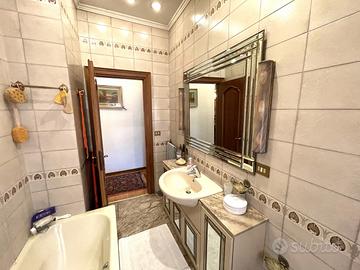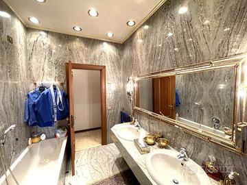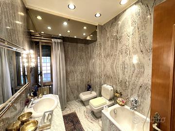 Appio Latino - San Giovanni - Nella storica Via Latina, a due passi dalle Mura Latine e dal Parco degli Scipioni, in posizione centralissima fornita di ogni servizio, proponiamo in vendita uno splendido appartamento di ampia metratura su due livelli, ai piani primo e secondo collegati tra loro da una magnifica scala interna. L'immobile è composto al primo piano da ingresso, salone doppio di rappresentanza con pavimenti in marmo travertino ed intarsi, un'ampia cucina abitabile, camera-studio impreziosita con boiserie in legno, bagno con finestra, comodo ripostiglio sottoscala ed ampio balcone. Attraverso una meravigliosa scala interna anch'essa in marmo travertino e corrimano di alta falegnameria, si accede alla zona notte sita al piano secondo, composta di tre camere da letto e due bagni entrambi finestrati ed un balcone. L'appartamento ristrutturato con materiali di pregio, presenta marmi e parquet nella pavimentazione, bagni completamente rivestiti in marmo di diversa tipologia, cabine armadio, porte ed opere di pregiata falegnameria, grate di sicurezza, allarme ed aria condizionata. Completa la proprietà una comoda cantina al piano sotterraneo.