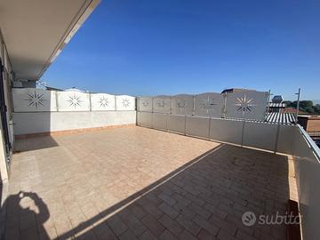L'immobile presenta un ampio ingresso che conduce a un luminoso salone con angolo cottura e con accesso diretto ad uno dei punti forti dell'appartamento, il terrazzo panoramico di 50 mq, ideale per cene estive o semplicemente per godere della vista, un bagno, 3 camere di vario taglio, tra cui una camera da letto con bagno interno, cabina armadio e accesso diretto ad un balcone, perfetto per momenti di relax all'aria aperta, una camera di media grandezza ed una cameretta, divisi da un corridoio per ottimizzare gli spazi.