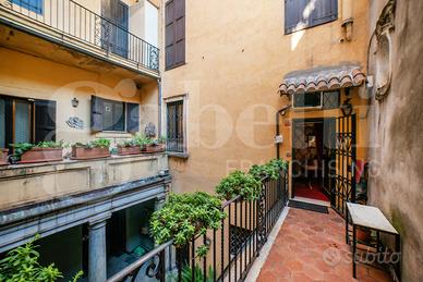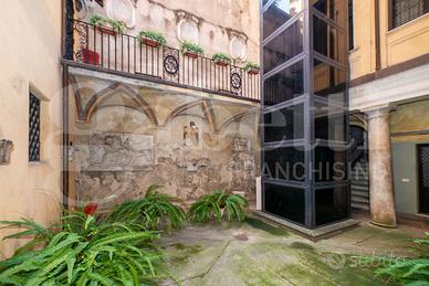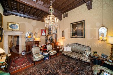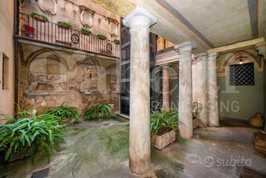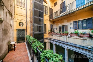 L'appartamento oltre ad una caratteristica scala di accesso condominiale completa di affreschi e sculture, dispone di riscaldamento autonomo, soffitti a cassettone alti 4 metri e pavimentazione in cotto antico.