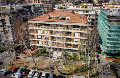 La palazzina in cortina è ubicata nella parte più bella ed elegante del quartiere Marconi, zona in continua espansione grazie alla vicinanza dell'Università Roma Tre ed alla riqualificazione di questo specifico tratto di Lungotevere. Il verde "Parco Marconi" è a due passi dall'immobile.