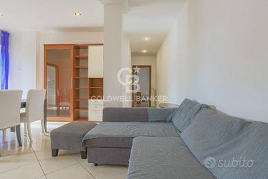 La distribuzione interna degli ambienti è ben studiata: lingresso si apre su un ampio salone a vista, luminoso e accogliente, con accesso a un balcone affacciato sul giardino condominiale.