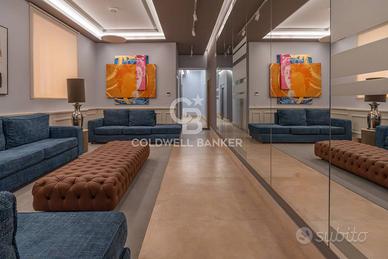 Il condominio offre accesso controllato, spazi comuni eleganti, una palestra condominiale e tutti i vantaggi di un edificio contemporaneo ricavato da un contesto storico.