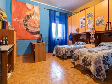 L'appartamento è dotato di controsoffittatura con faretti, grate alle finestre, porta blindata, armadi a muro, porte scorrevoli in vetro-legno, cantina fuori terra finestrata con camino e bagno (utilizzabile come mini appartamento), ampio giardino STACCATO dall'abitazione.
