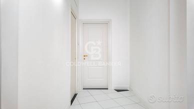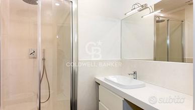 Si compone di ingresso accogliente, soggiorno con due balconi, con un gradevole affaccio silenzioso nel verde, cucina abitabile, due camere da letto e due bagni, di cui uno en suite. Gli affacci aperti e l esposizione garantiscono ambienti molto luminosi e silenziosi. Aria condizionata in tutti gli ambienti e riscaldamento autonomo.