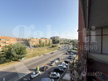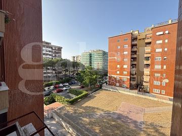 Torrino Sud - Viale Camillo Sabatini - In complesso residenziale con parco condominiale, nelle immediate vicinanze di ogni servizio e comodamente e direttamente collegato tramite passaggio esclusivo alla stazione Tor di Valle, proponiamo in vendita un luminoso appartamento con doppia esposizione sito al 3° piano di una palazzina in cortina, con affaccio esterno a sud-sud est, composto da ingresso, ampio salone, cucina abitabile, tre camere da letto, due ripostigli, due bagni entrambi con finestra, balcone e terrazzo vivibile. Completa la proprietà un box auto ed un posto auto condominiale scoperto negli spazi consentiti.