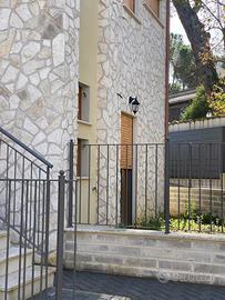 Rif V01/25 - Via Cassia, importante via consolare romana che, paesaggisticamente e storicamente, lungo il suo percorso offre una cornice storica, nella parte adiacente La Giustiniana e all'interno di un riservato e piccolo complesso residenziale di recente costruzione e collocato in posizione dominante, costituito da villini a schiera dalle linee moderne e con aree esterne dedicate ai parcheggi privati, proponiamo in vendita un appartamento sviluppato su due livelli con doppio e solare affaccio sul verde circostante. L'immobile occupa il 1° e il 2° piano, ultimo, del villino con entrata indipendente dal piano terra con scala lineare esterna, ed è composto da piccolo ingresso, soggiorno con angolo cottura e con accesso al balcone, una camera da letto matrimoniale, bagno con doccia e finestra, scala lineare di design interna per accesso al piano superiore che ospita la cameretta con accesso al balcone vivibile e panoramico, piccolo bagno cieco con doccia. Completa la proprietà un comodo posto auto scoperto inserito nel piccolo contesto condominiale.