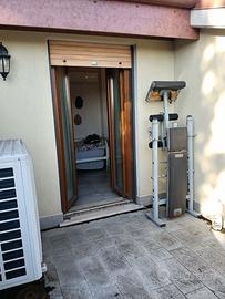 L'appartamento, in ottime condizioni e rifinito con materiali di pregio, è dotato di doppio impianto fotovoltaico per la produzione di acqua calda ed energia elettrica, riscaldamento autonomo con radiatori in alluminio e termoarredo nei servizi, climatizzatori caldo/freddo negli ambienti principali della casa, videocitofono, porta blindata, infissi con doppiovetro e tapparelle elettriche.