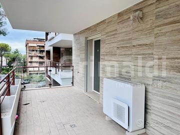 EUR TORRINO NUOVE RESIDENZE TOWER HILL - TRILOCALI Rif. V12/26 - RESIDENZE TOWER HILL VIA MAR DELLA CINA - ROMA - EUR - TORRINO Siamo lieti di proporre un elegante progetto abitativo in PRONTA CONSEGNA, totalmente nuovo, al passo con i tempi ma con una visione proiettata al futuro. DISPONIAMO DI DIVERSE TIPOLOGIE DI TRILOCALI con TERRAZZO, a partire da Euro 383.000,00, tutti corredati da finiture eleganti ed esclusive, con infissi in legno laccato "Dear", pavimenti e rivestimenti in gres porcellanato "Energie Ker", esterni arricchiti con cristalli e fioriere in cemento bianco, impianti firmati da grandi e storici marchi quali "BTicino" e "Ideal Standard". Il trilocale proposto è composto da soggiorno con cucina a vista, disimpegno, due camere da letto, doppi servizi di cui uno en suite. Tutti gli ambienti sono dotati di porta finestra per l'uscita sul grande terrazzo. Possibilità di acquisto anche di un posto auto. Il nome "TOWER HILL", evocativo di uno dei punti più alti della città di Londra, capitale della Gran Bretagna e centro commerciale bancario e culturale tra i maggiori del mondo, identifica effettivamente un edificio costruito da zero nel punto più alto della zona Torrino, area moderna con ottima viabilità e perfettamente collegata con le grandi arterie e con tutti i servizi ma, allo stesso tempo, un edificio immerso nella tranquillità di Via Mar della Cina, circondato dal verde e da edifici residenziali serviti da ampie aree di parcheggio. Le nuove residenze TOWER HILL al Torrino sono il miglior esempio di casa connessa e gestibile con un semplice click. Le moderne tipologie abitative sono state progettate per far convivere le tecnologie eco-friendly, tanto ricercate oggi e indispensabili domani, quali il riscaldamento a pompa di calore a pavimento a basso impatto, che crea un piacevole abbraccio di benessere in tutta la casa, oppure la connessione di tutti i sistemi elettrici gestibili da smartphone e programmabili da remoto ovunque