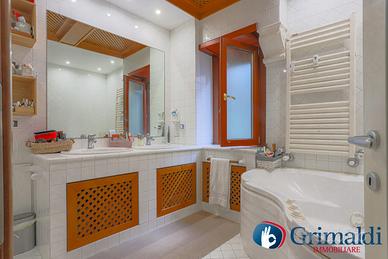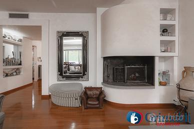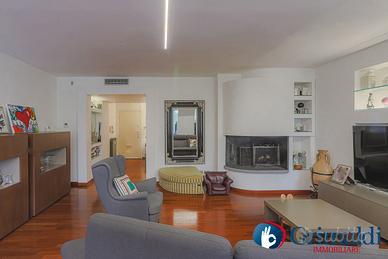 L'appartamento, di generosa metratura, è composto da un ampio ingresso, salone doppio con camino, cucina abitabile, 4 camere da letto, doppi servizi, di cui uno en suite con vasca idromassaggio, tre balconi e un ampio terrazzo.