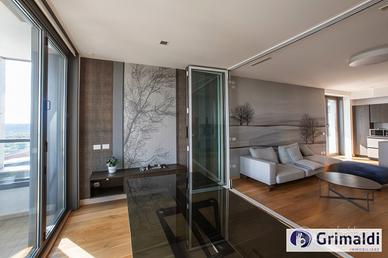 L'unità immobiliare, con panoramica e solare esposizione ad est e a sud con spettacolare vista sulla Capitale, è composta da ingresso con armadi a muro realizzati su misura, ampio salone con cucina a vista con isola e affaccio panoramico dal terrazzo, zona pranzo nella serra bioclimatica con balconata, suite matrimoniale con bagno privato con vasca e riservata area studio con cabina armadio e accesso al terrazzo, camera da letto con area armadi e studio/giochi, altro servizio con doccia idromassaggio, ripostiglio con area lavanderia.