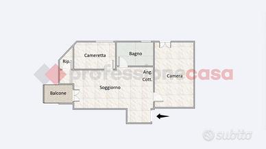 L'appartamento è composto da: ingresso, soggiorno con angolo cottura e balcone panoramico, camera da letto matrimoniale, cameretta, ripostiglio e bagno.