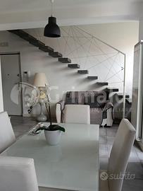 Rif VG05/25 - Via Cassia, importante via consolare romana che, paesaggisticamente e storicamente, lungo il suo percorso offre una cornice storica, nella parte adiacente La Giustiniana e all'interno di un riservato e piccolo complesso residenziale di recente costruzione e collocato in posizione dominante, costituito da villini a schiera dalle linee moderne e con aree esterne dedicate ai parcheggi privati, proponiamo in vendita un appartamento sviluppato su due livelli con doppio e solare affaccio sul verde circostante. L'immobile occupa il 1° e il 2° piano, ultimo, del villino con entrata indipendente dal piano terra con scala lineare esterna, ed è composto da piccolo ingresso, soggiorno con angolo cottura e con accesso al balcone, una camera da letto matrimoniale, bagno con doccia e finestra, scala lineare di design interna per accesso al piano superiore che ospita la cameretta con accesso al balcone vivibile e panoramico, piccolo bagno cieco con doccia. Completa la proprietà un comodo posto auto scoperto inserito nel piccolo contesto condominiale.