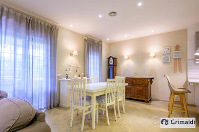 VS18/25 Tintoretto appartamento con terrazzo. In via Benozzo Gozzoli, all'interno di un signorile condominio con servizio di portineria, piscina e campi da tennis proponiamo la vendita di ampio appartamento che ben si presta come casa familiare sia per l'esclusività della zona in cui l'edificio si trova, sia per la qualità e l'eleganza delle finiture. L'unità immobiliare, completamente ristrutturata nel 2014 è internamente suddivisa in modo da valorizzare le caratteristiche di ogni spazio. Tra i suoi punti di maggior forza spiccano la luminosità dell'esposizione est, il moderno sistema di riscaldamento e raffreddamento canalizzato per un confort ottimale in ogni stagione, le tapparelle elettriche per una maggiore praticità ed il grande terrazzo con affacci aperti ideale per godersi momenti di relax all'aria aperta. La proprietà consiste di salone doppio con cucina a vista completamente arredata e completa di elettrodomestici, tre camere da letto, uno studio, tre bagni ed una lavanderia. Il prezzo richiesto è di euro 490.000,00; l'importo mensile degli oneri condominiali ammonta a 350,00 euro ed include, oltre alle spese ordinarie, anche i costi relativi al riscaldamento e ai consumi idrici, soggetti ad eventuale conguaglio. Classe energetica G. Per maggiori informazioni e prenotazione appuntamenti di visita, siamo a Vostra disposizione presso la nostra agenzia Grimaldi di Roma Serafico al numero