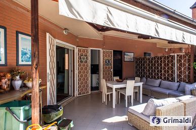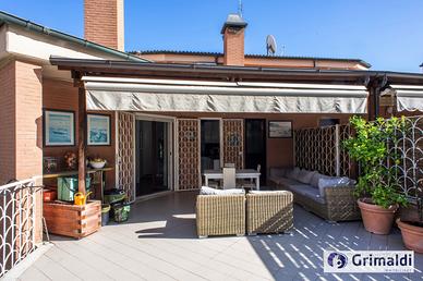 Grottaperfetta, uno dei quartieri più piacevoli e verdi della Capitale, proponiamo in vendita un elegante appartamento su due livelli con ampio terrazzo, situato in una palazzina in cortina di soli tre piani, dotata di ascensore con accesso diretto anche ai box auto. La proprietà, posta al secondo e terzo piano, gode di un'ottima esposizione e si distingue per la luminosità e la qualità delle finiture. Il primo livello si apre su un ingresso che conduce a un ampio salone con accesso al terrazzo vivibile. La cucina è abitabile e anch'essa dotata di uscita sul terrazzo. La zona notte comprende due camere da letto con armadi a muro, due bagni e un disimpegno che collega in modo funzionale gli ambienti. Una scala interna collega il piano superiore, dove si trova una spaziosa soffitta con altezza di 2,20 metri, ideale come studio, zona relax o spazio multifunzionale. Ristrutturato nel 2022, l'appartamento è stato concepito secondo i più alti standard costruttivi, con pavimenti in parquet, porta blindata, infissi moderni con doppi vetri, tapparelle elettriche, grate di sicurezza, riscaldamento e condizionamento autonomi. La zona è ben collegata al centro di Roma grazie a una rete efficiente di trasporti pubblici, ed è facilmente raggiungibile anche con mezzi privati. Il prezzo richiesto, comprensivo di box auto, è di € 639.000,00. Classe energetica G, IPE 175 kWh/m² anno. Per informazioni e visite è possibile contattare il numero dove un consulente sarà a completa disposizione.