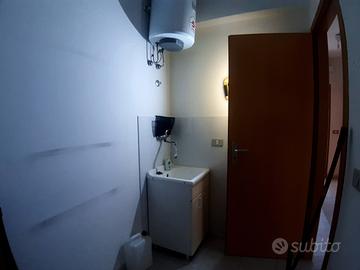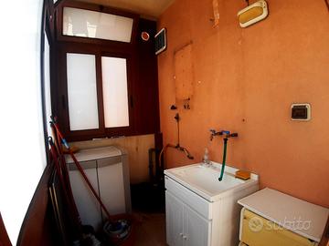 Ripostiglio con lavabo e doppi servizi, entrambi finestrati di cui uno con vasca e box doccia. Tutti gli ambienti sono ben disimpegnati da un corridoio.