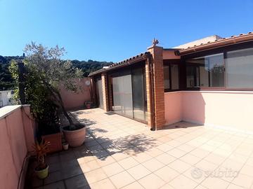 Sempre all'interno della proprietà una dependance al piano terzo composta da ingresso su soggiorno, cucinino, wc e con ampio spazio esterno panoramico. completa la proprietà un box di 19mq. e due posti auto all' interno del condominio.