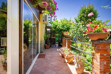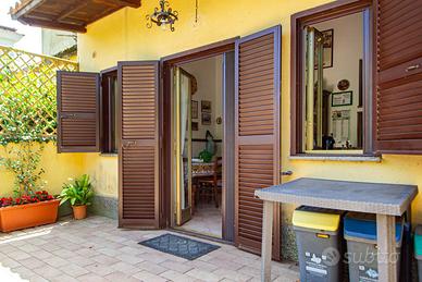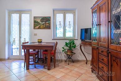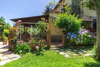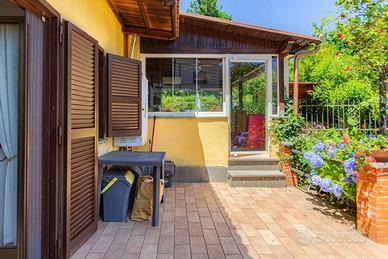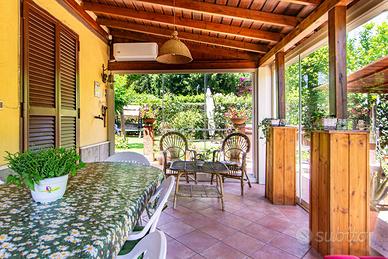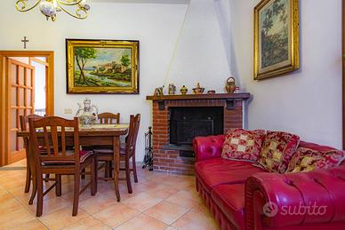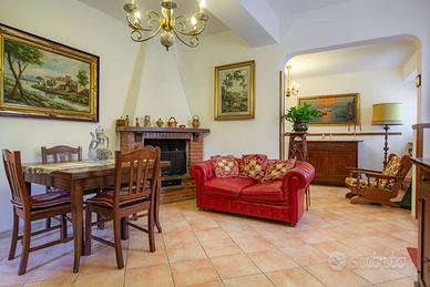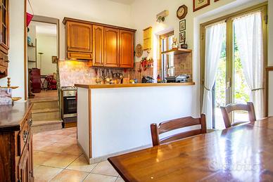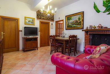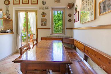 L'immobile è stato completamente ristrutturato negli impianti, negli infissi, nei pavimenti ed è composto da ampio salone, con due camini in pietra, due camere da letto, due bagni, una cucina abitabile con tinello, ed un soggiorno dal quale si accede ad un portico di circa 30 mq sfruttabile anche d'inverno grazie ad una chiusura con vetri scorrevole.