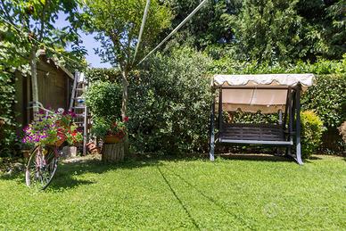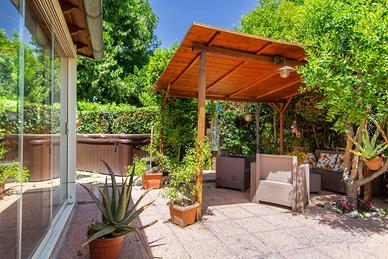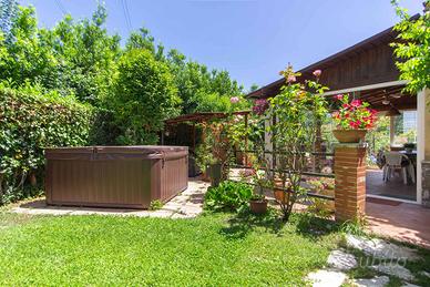 Circondata da un curatissimo giardino, la proprietà è attrezzata di barbecue con una minipiscina Jacuzzi e doccia esterna con illuminazione e impianto d'irrigazione, ideale per i momenti di relax all'aria aperta o per organizzare piacevoli serate.