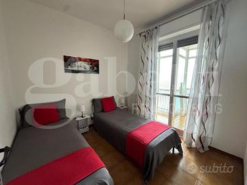 L'appartamento è composto da: ampio soggiorno, cucina separata, due camere, un terrazzo, un balcone e un bagno finestrato con doccia.