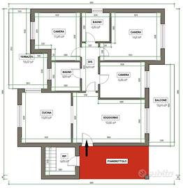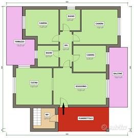 - ingresso su soggiorno di circa 20 mq con uscita su balcone di 12 mq