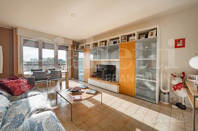 L'immobile, accogliente e ben distribuito, si apre su un ampio e piacevole soggiorno con accesso diretto a un terrazzo panoramico, perfetto per momenti di relax all'aria aperta. La cucina abitabile è spaziosa, funzionale e con grosse finestre e accesso a un balconcino che garantiscono ulteriore luce e respiro agli ambienti. La zona notte è composta da due camere da letto, di cui una con accesso a un'ulteriore balconata e doppi servizi.