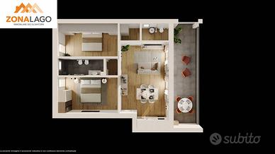 nuovo trilocale con doppio servizio posto al piano primo ed ultimo con terrazza vivibile, balcone ed vista lago,