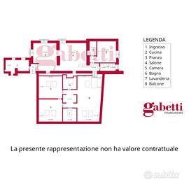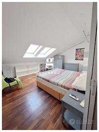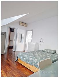 La sua superficie ha consentito la creazione di due vaste zone di cui una rappresenta la zona giorno servita da ben 2 saloni oltre un camera da letto con bagno privato e un secondo bagno servizio del piano. La seconda zona, mansardata, è costituita da un ampio salone, 2 camere e servizi vari con la presenza di un angolo cottura.