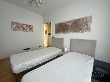 In contesto tranquillo e riservato, proponiamo in vendita luminoso appartamento al primo piano con ampio terrazzo, inserito in uno stabile di poche unità abitative. L'immobile si distingue per gli spazi ben distribuiti e il comfort abitativo: l'ingresso conduce a un accogliente soggiorno con accesso diretto al terrazzo, ideale per rilassarsi all'aperto o condividere piacevoli momenti in compagnia. La cucina è abitabile e funzionale. La zona notte è composta da due camere da letto matrimoniali e due bagni, uno dotato di doccia e l'altro di vasca, per soddisfare ogni esigenza. Completano la proprietà un grande balcone, una comoda cantina e un ampio garage doppio interrato, perfetto per due auto e con ulteriore spazio da adibire a deposito o ricovero biciclette. Grazie all'ottima esposizione, l'appartamento risulta particolarmente luminoso e ben arieggiato durante tutta la giornata. La soluzione è inserita in un contesto riservato, ma al tempo stesso comodo ai principali servizi. Contattaci per maggiori informazioni o per prenotare una visita!