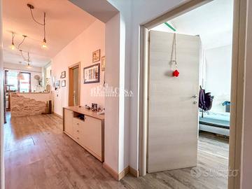 Facente parte di un maggior fabbricato in oggetto con 3 unità abitative. L'appartamento è stato compeltamente ristrutturato con pavimentazione in gres porcellanato effetto parquet, bagni completamente ristrutturati con box doccia in cristallo e rivestimenti in ceramica, impianto idraulico nuovo con caldaia ed elementi per il riscaldamento in alluminio, impianto elettrico con elementi BTicino, infissi in legno con doppio vetro e persiane in legno.