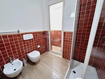 Appartamento monolocale open space di 73 mq al piano terra, una piccola corte pavimentata all'ingresso ove si può godere di una piacevole vista mare, ingresso su soggiorno con cucina a vista, una camera matrimoniale, spazio per seconda camera singola o angolo studio, un bagno con doccia finestrato, tre ripostigli, di cui uno adiacente al cavedio, corte esterna con vista mare. Esposizione est.