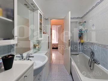 A San Bendetto del Tronto nella centralissima via Montebello al civico 63 la Gabetti franchising propone in vendita un appartamento di 109mq compresi balconi al primo piano di una palazzina con ascensore di cinque piani fuori terra. L'appartamento che ha una tripla esposizione Est- Nord- Ovest, è organizzato in una zona giorno con ingresso su ampio soggiorno con affaccio su balcone che serve tutto il lato Est, una cucina abitabile con balconcino di servizio con esposizione ad Ovest . La zona notte è divisa in un disimpegno, due camere da letto matrimoniali e una singola, due bagni entrambi con finestra, uno con doccia l'atro con vasca. L'appartamento si presenta in condizioni manutentive molto buone, pavimenti in gress, finestre in legno doppio vetro, riscaldamento autonomo con radiatori, aria condizionata in tutte le stanze. Zona giorno e zona notte sono separate da una bella porta a vetro stile inglese. Completa la proprietà una comoda soffitta al quinto piano. Per la sua posizione adiacente all'isola pedonale, a tutti i servizi e al mare, l'appartamento costituisce un'ottima soluzione come abitazione principale, ma anche come casa per le vacanze. Le presenti informazioni non costituiscono elemento contrattuale.